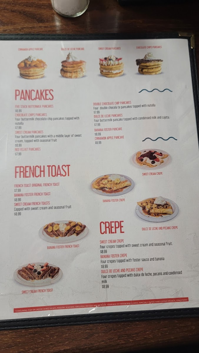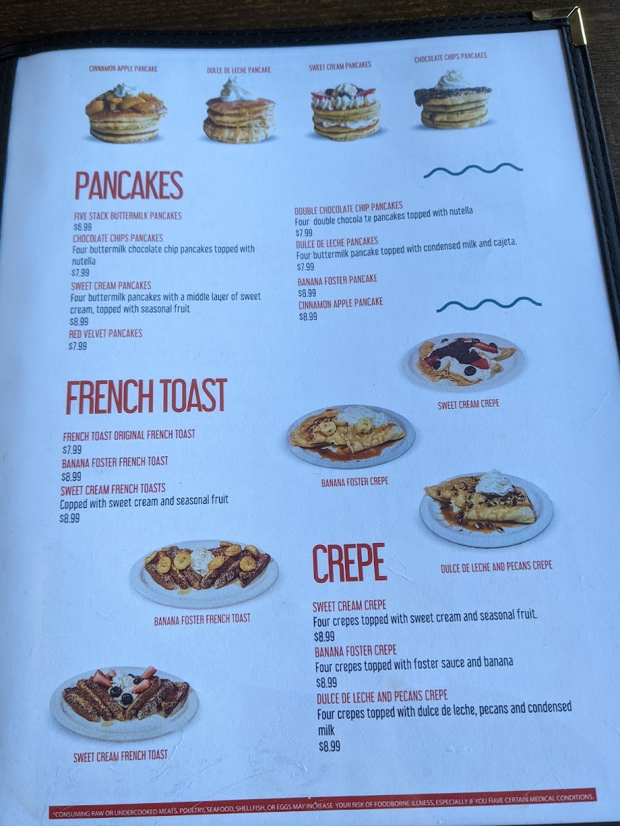 Chocolate chip pancakes, available in 2 or 4 pieces.